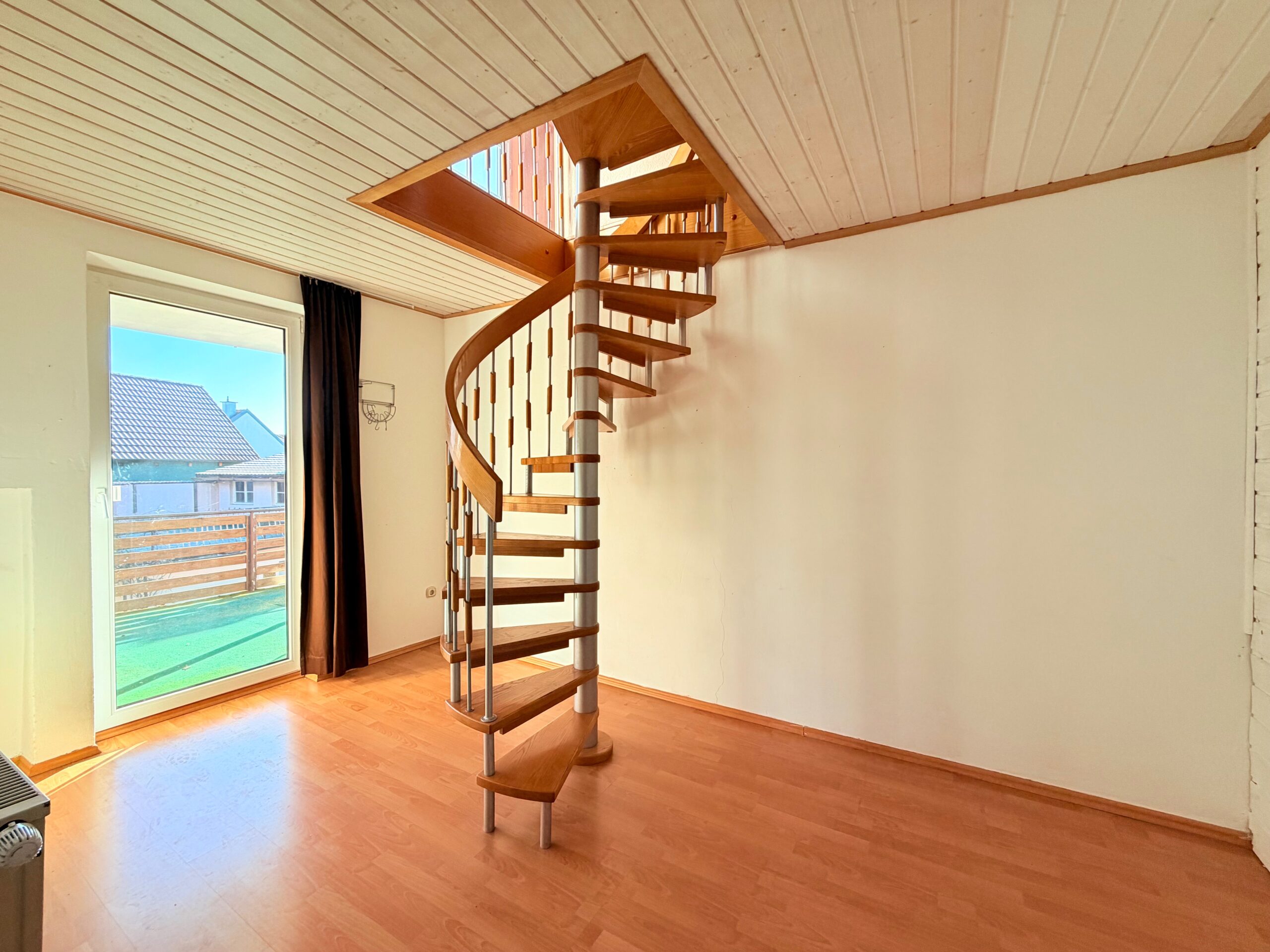 – Verbindung durch Holztreppen und eine Wendeltreppe